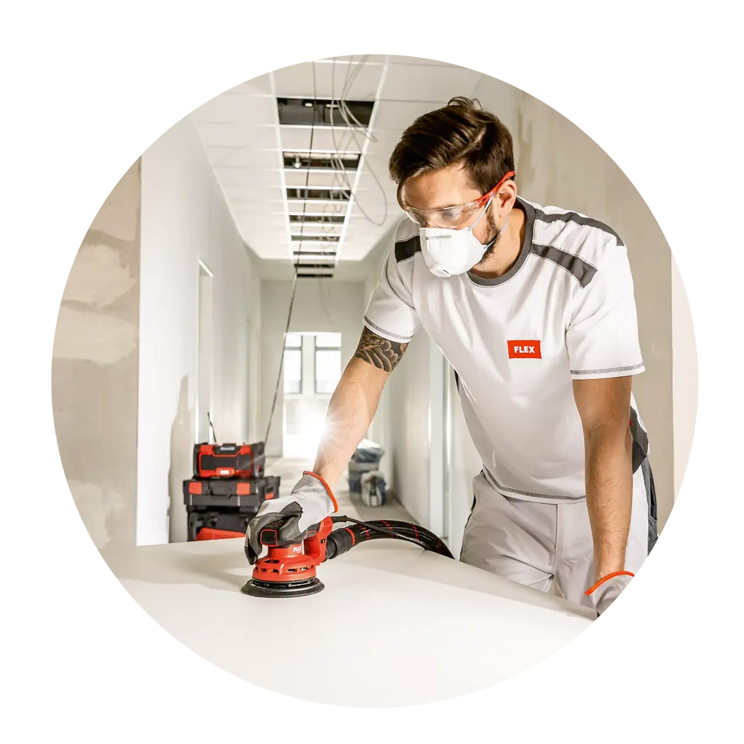 - Skuteczne odsysanie pyłu dzięki zintegrowanemu zasysaniu, zapewniającemu pracę bezpyłową. Z wkładem filtrującym.