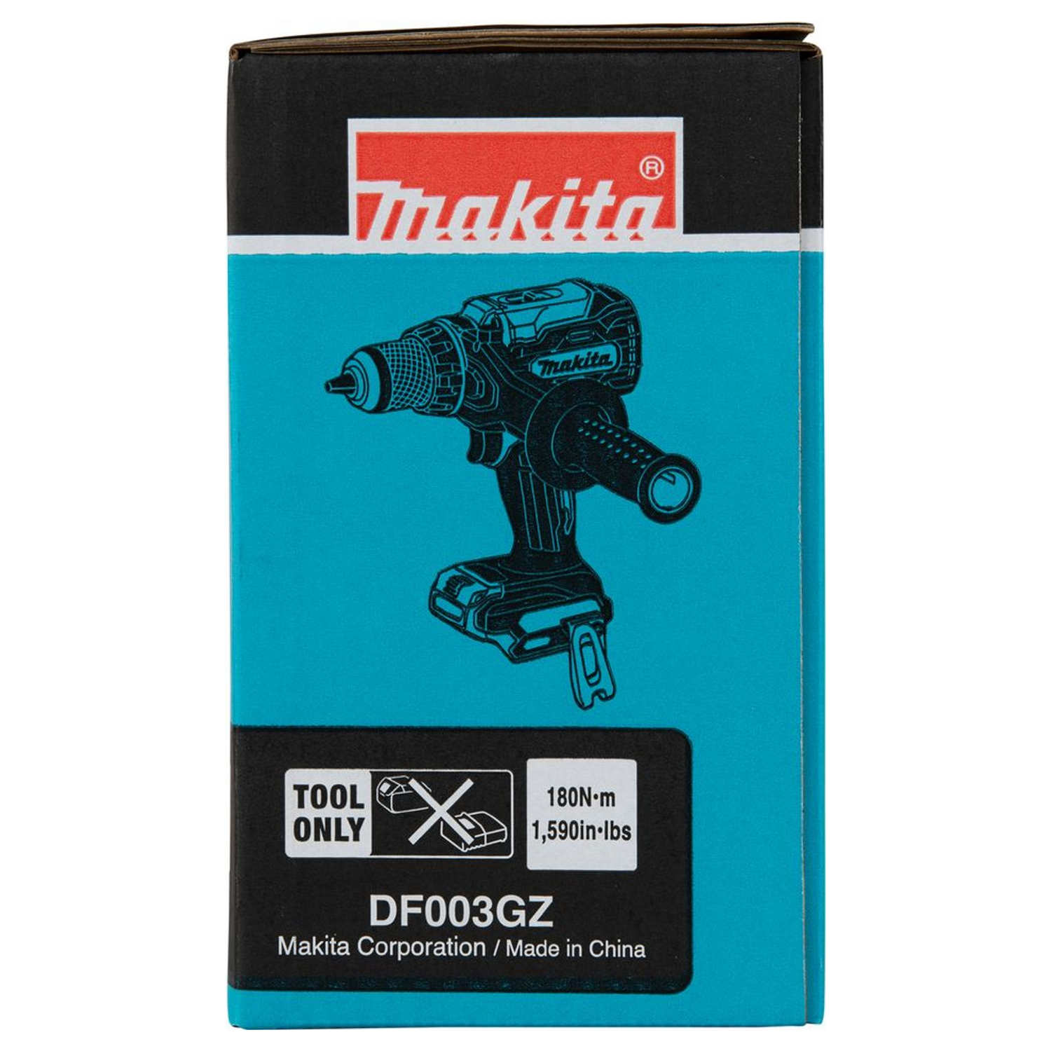 Wiertarka Makita DF003GZ 40 V z silnikiem bezszczotkowym, momentem obrotowym 180 Nm i technologią XPT. Idealna do użytku profesjonalnego.