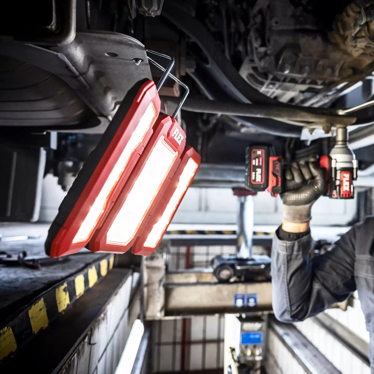Ten Reflektor LED Flex TL 4000 18,0/230 To mocna lampa zasilana bateryjnie, zaprojektowana z myślą o zapewnieniu oświetlenia dostosowanego do wszelkich potrzeb profesjonalistów. 3 poziomy jasności Ten reflektor o strumieniu świetlnym 1000, 2000 i 4000 lumenów idealnie nadaje się do oświetlenia dużych powierzchni roboczych lub do oświetlenia konkretnych obszarów dzięki obrotowym panelom, które umożliwiają regulację rozsyłu światła. Można go używać bezpośrednio z akumulatorem 18 V lub za pomocą przewodu zasilającego, co zapewnia optymalną elastyczność.