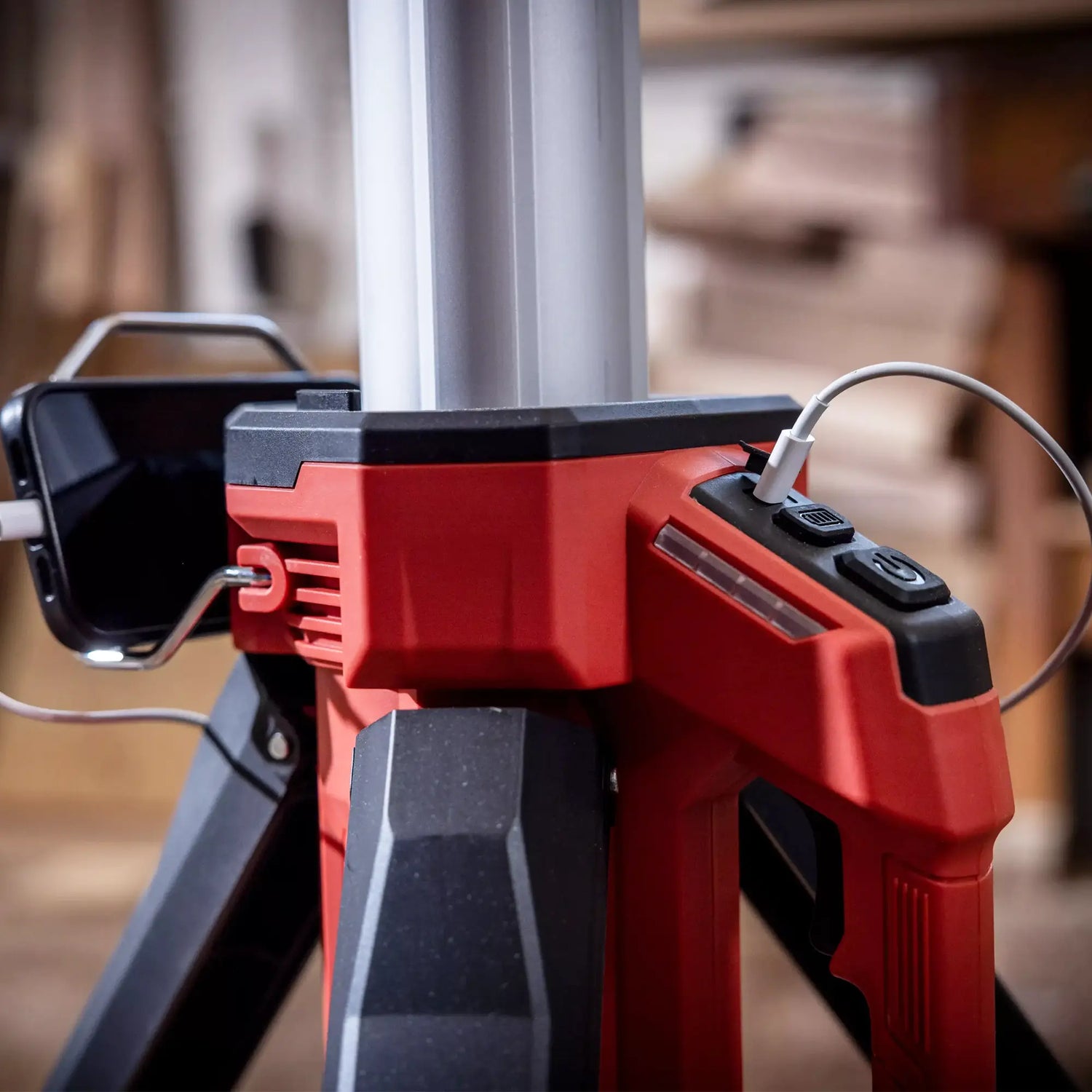 • Zaawansowana funkcjonalnośćWyposażony w Port USB-C do ładowania smartfonów i innych urządzeń, a także Wskaźnik poziomu naładowania LED, Włącznik/wyłącznik oraz drugi przycisk zasilania na stojaku umożliwiają łatwą kontrolę oświetlenia.