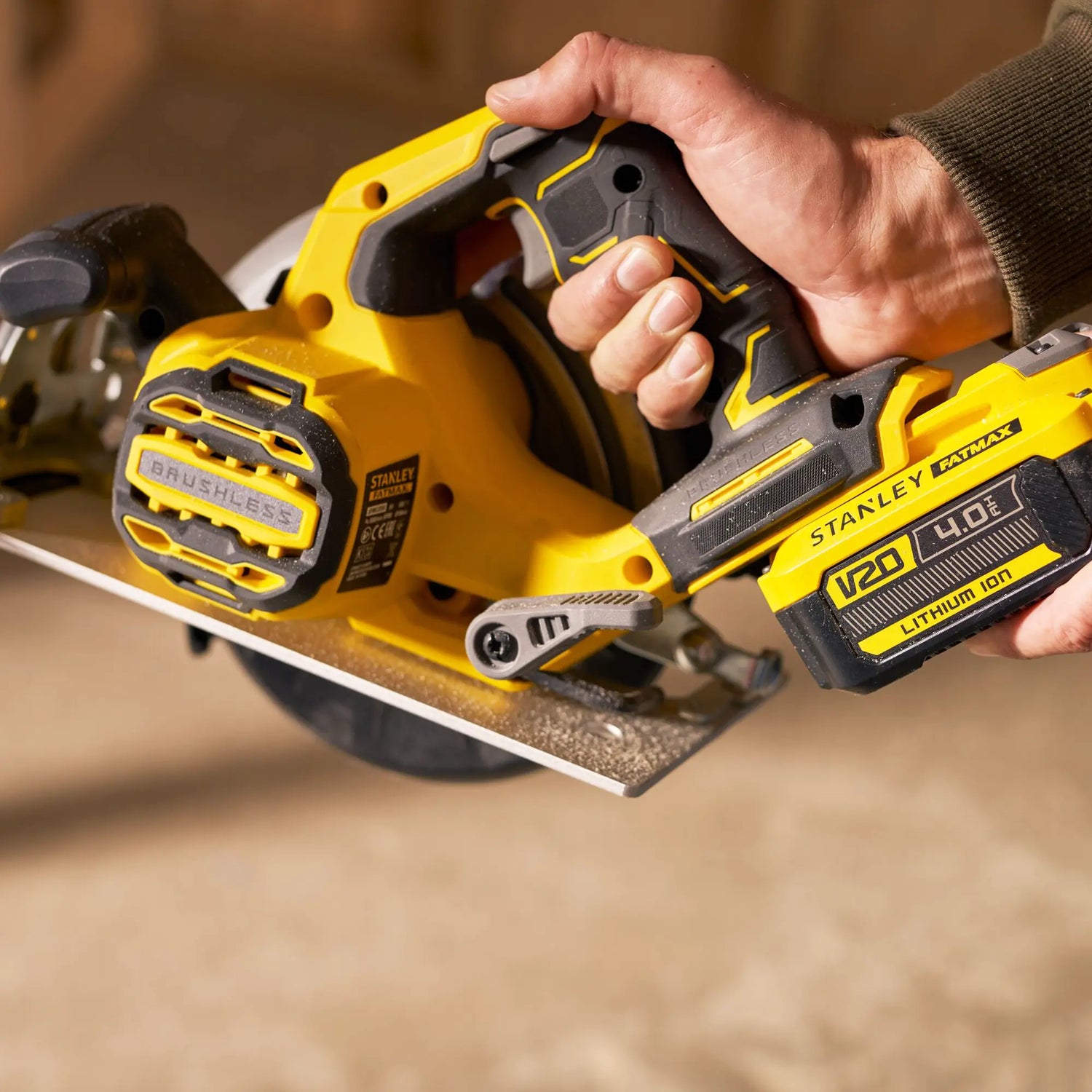 Tam Piła tarczowa Stanley SFMCS550M2K-QW Posiada silnik bezszczotkowy zapewniający lepszą wydajność i większą efektywność.