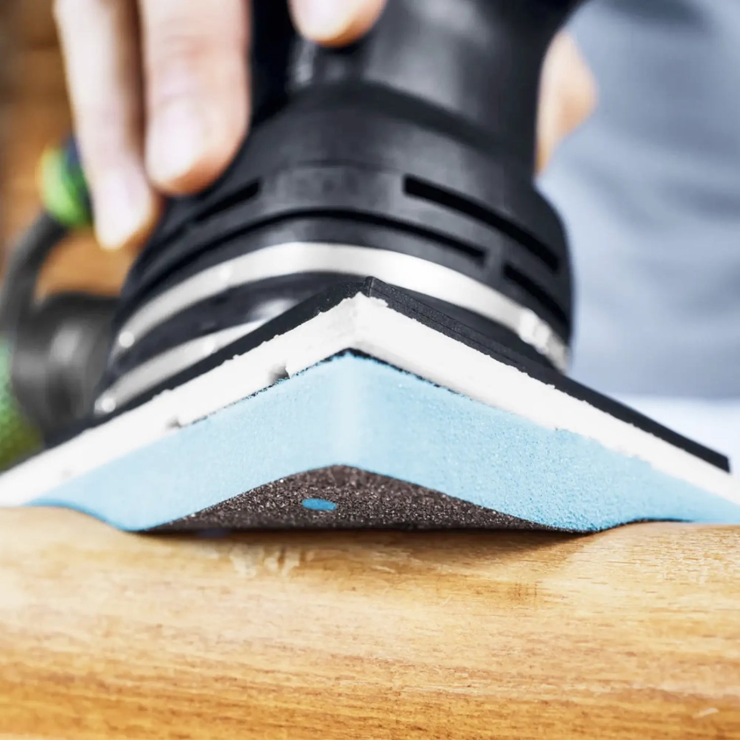 Służy do kontrolowane szlifowanie profili, krzywizny i kontury, umożliwiając uzyskanie jednolitego wykończenia na drewnie, powierzchniach malowanych, sztukaterii i nowoczesnych okładzinach, nawet na obiektach o skomplikowanej geometrii.