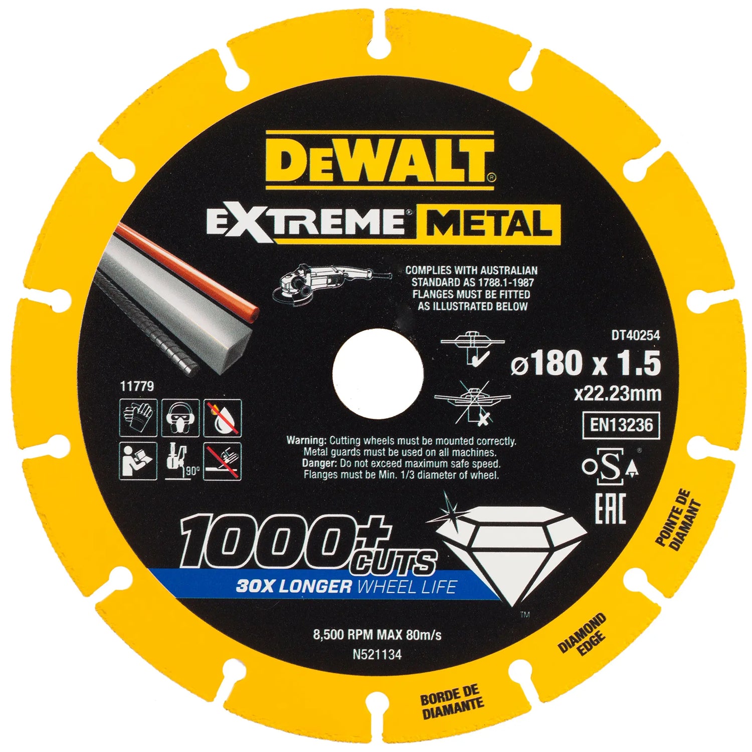 Ten Tarcza diamentowa DeWALT DT40254-QZ do metalu Oferuje idealne połączenie trwałości, precyzji i bezpieczeństwa, gwarantując mniejszą ilość pyłu, większą niezawodność i lepszą wydajność w porównaniu z tradycyjnymi tarczami ściernymi.