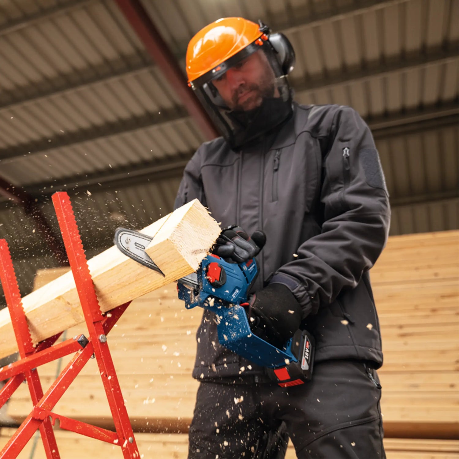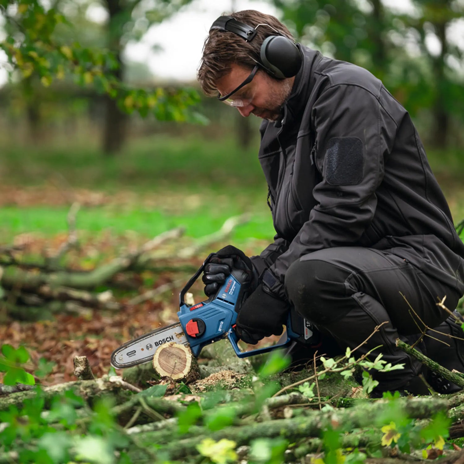 The Pruner Bosch GKE 18V-15, lightweight, high-performance pruning saw, perfect for cutting in tight spaces.