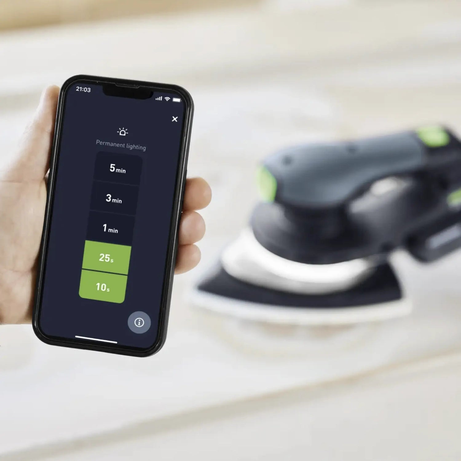 La Levigatrice Delta Festool DTSC 200 18V, precisa fin nei minimi dettagli, anche vicino al bordo con luce LED.