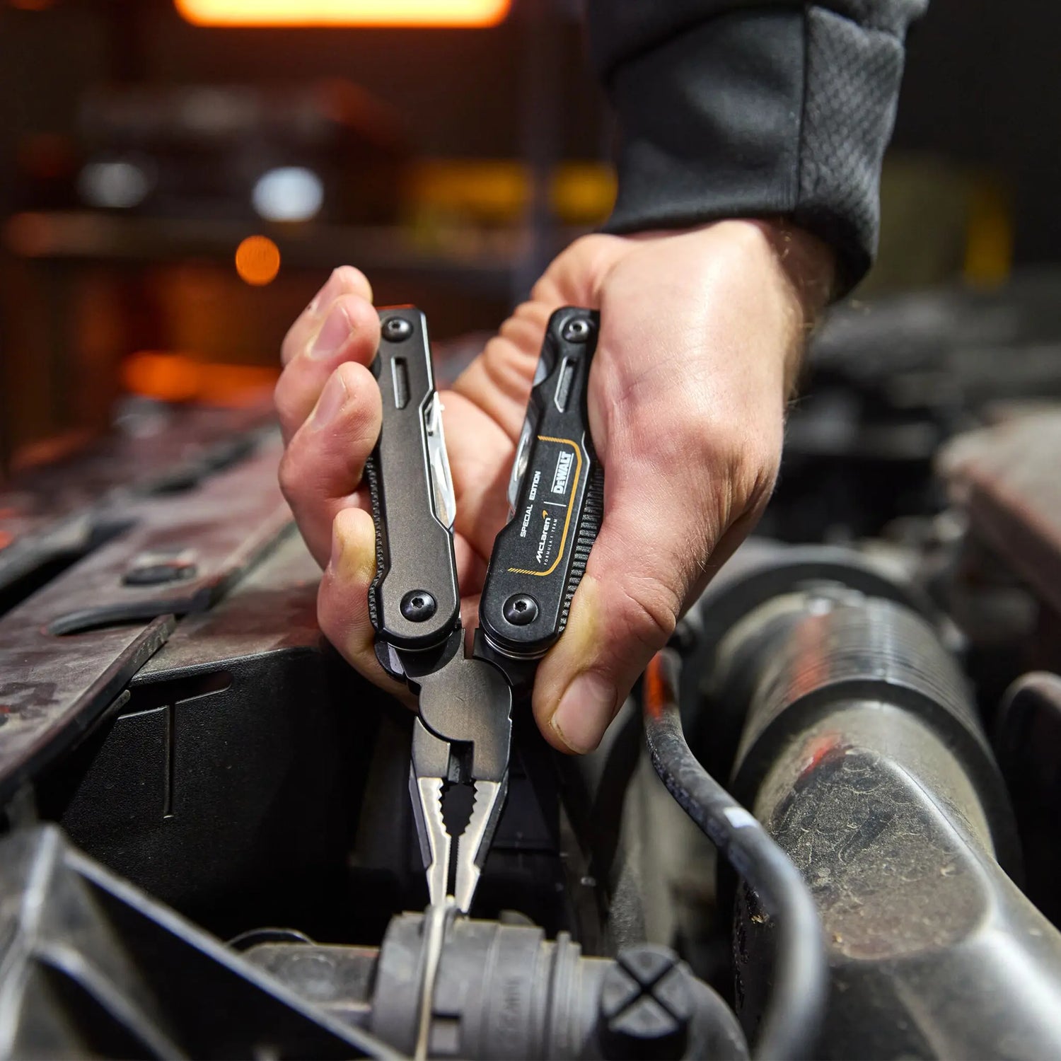 Narzędzie wielofunkcyjne Dewalt DWHT71844-9 16-1 ze szczypcami, kombinerkami, obcinakiem, pilnikiem, ściągaczem izolacji, śrubokrętami.