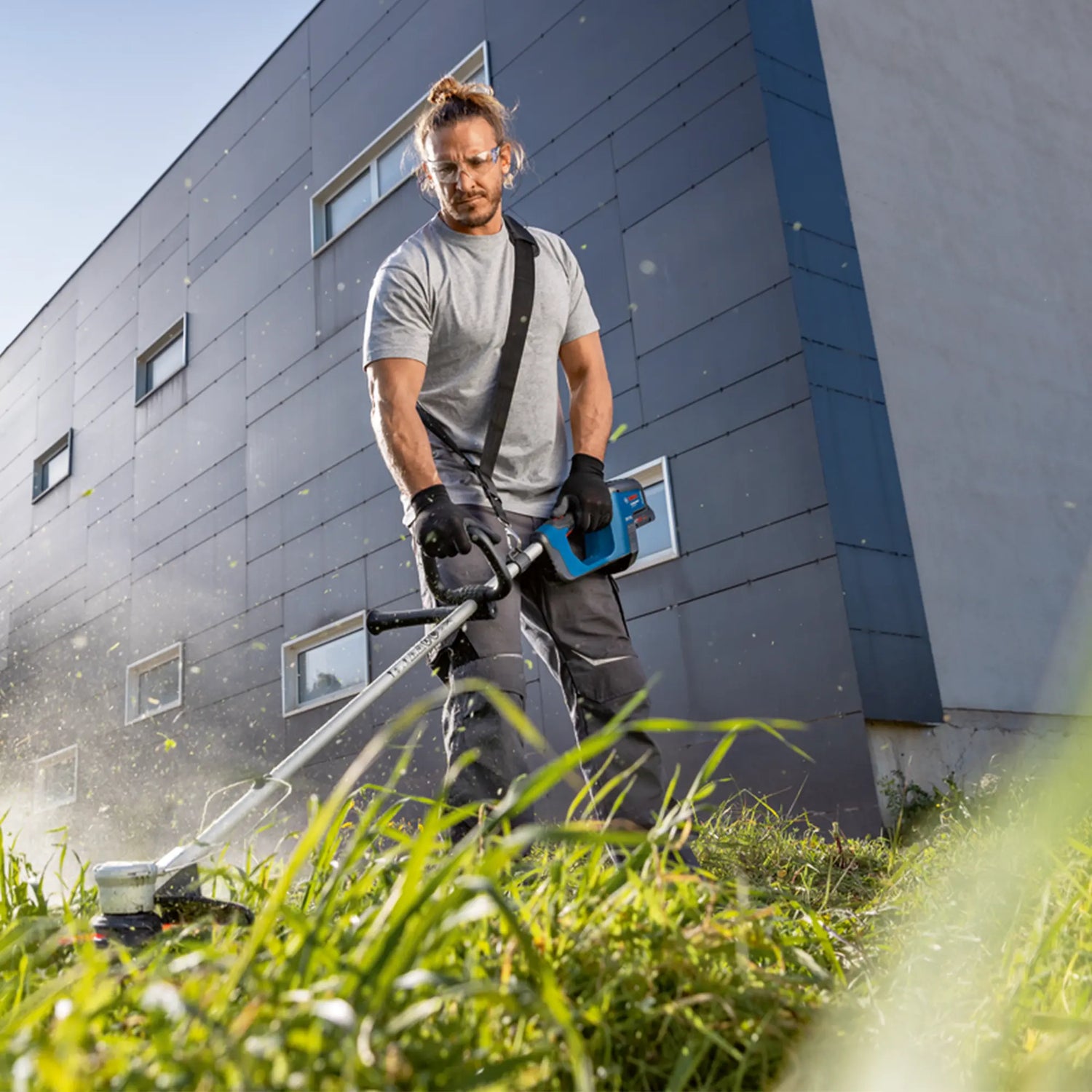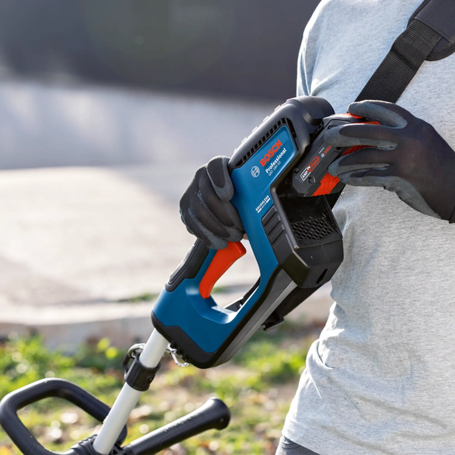 System Bosch zapobiegający plątaniu zapewnia nieprzerwaną pracę, podczas gdy elektroniczna regulacja prędkości Utrzymuje stabilne obroty nawet pod obciążeniem. Jest kompatybilny ze wszystkimi akumulatorami. Bosch Professional 18 V i z platformą AMPShare, dla całkowitej wszechstronności.